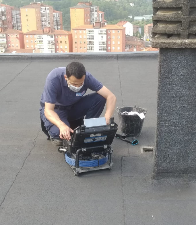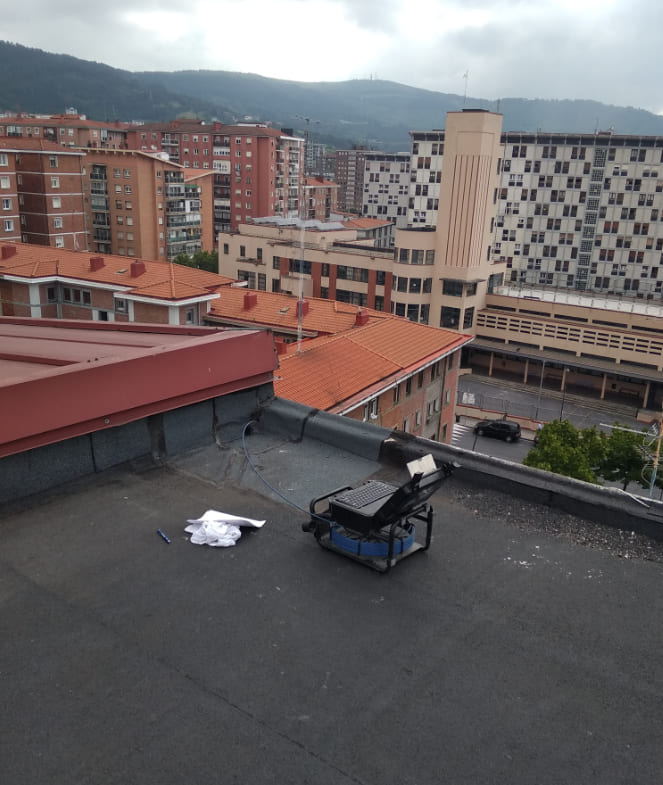Para confirmarlo, nuestros técnicos acceden al tejado y proceden a realizar una inspección con el equipo de T.V. desde los sumideros para detectar cualquier problema que pueda afectar a la comunidad.